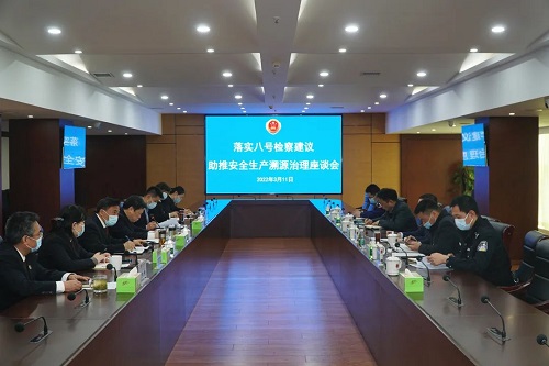 为贯彻落实最高人民检察院“八号检察建议”,进一步推动江宁安全生产监管工作,3月11日上午,江宁区人民检察院召开“落实‘八号检察建议’,助推安全生产溯源治理”座谈会。会议邀请区安委办、区应急管理局、区公安分局、区城建局、区市场监督管理局、区消防救援大队等单位相关负责同志参加。