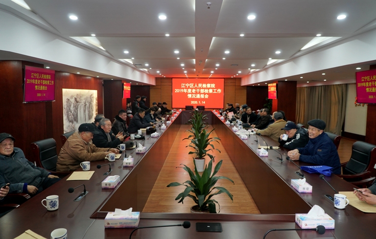 2020 年 1 月 14 日,我院召开老干部检察工作情况通报暨迎春座谈会,邀请院离退休老干部到院座谈。院党组副书记、副检察长马虹参加。专职委员金霞主持会议。老干部们观看了 2019 年检察工作宣传片、听取了马虹副检察长关于 2019 年院检察工作情况及 2020 年工作目标的通报。座谈会上,马虹对老同志长期以来对江宁检察工作的关心和奉献表示感谢,向他们致以新春祝福,表示院党组将进一步加强对老干部的关心关爱,做到政治上多关心、思想上多沟通、生活上多照顾。会上,老干部们对我院 2019 年各项检察工作取得的成绩给予充分肯定,并提出意见建设,表示将继续关心、支持检察工作,为江宁检察事业发展建言献策。