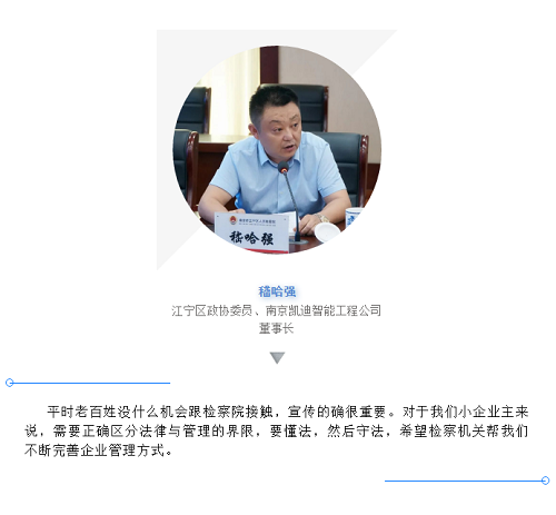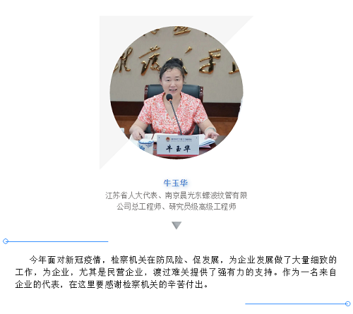 来自企业界的代表们高度评价了检察机关在抗击新冠疫情过程中和帮助企业复工复产过程中的突出表现,并结合各自工作提出了中肯的意见。