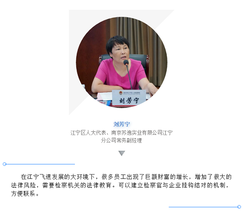 为进一步贯彻落实江苏省检察机关“保安全,促生产”的检察工作重点任务,结合代表委员联络活动要求,8月28日,江宁区人民检察院举办“服务企业发展、护航江宁经济”检企座谈会,邀请部分省、市、区三级人大代表和江宁区部分政协委员来院座谈。