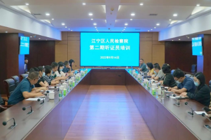 9月14日,江宁区检察院开展第二期听证员培训会。南京市检察院案管处处长黄志坚、南京市检察院第九检察部干警李继方分别为听证员们进行精彩授课。