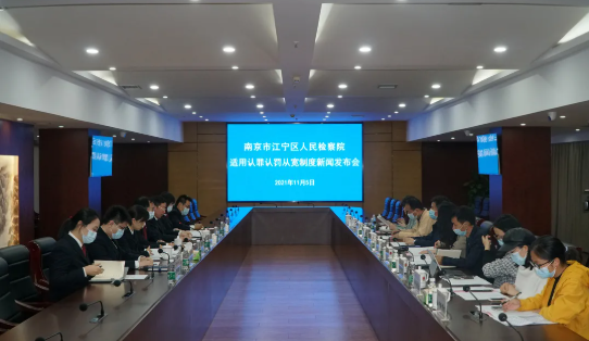 11月5日下午,江宁区检察院召开适用认罪认罚从宽制度新闻发布会,向社会媒体通报江宁区检察院该项工作情况。社会媒体记者代表及人大代表、政协委员、特约检察员等11人受邀参会并进行座谈。